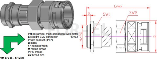 » Konektor přímý s vnějším závitem a integrovanou EMC vývodkou